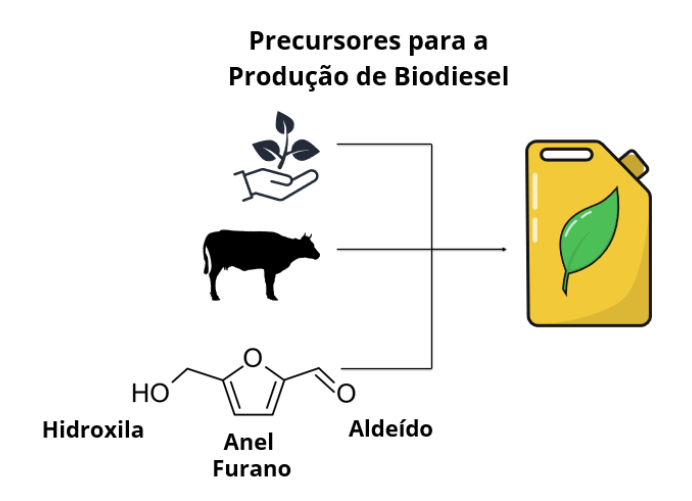 A fim de reduzir toda essa problemática, o biodiesel, um combustível produzido a partir de fontes renováveis, como óleos vegetais e gorduras animais, contribui para diversificar as fontes de energia, reduz a dependência aos fósseis, desenvolve a economia e mitiga as mudanças climáticas. Uma rota alternativa para a produção de biodiesel é a utilização do composto químico 5-hidroximetilfurfural (5-HMF). A estrutura do 5-HMF consiste em um anel furano (que lembra a forma de um anel) ligado a um grupo aldeído e um grupo hidroxila.